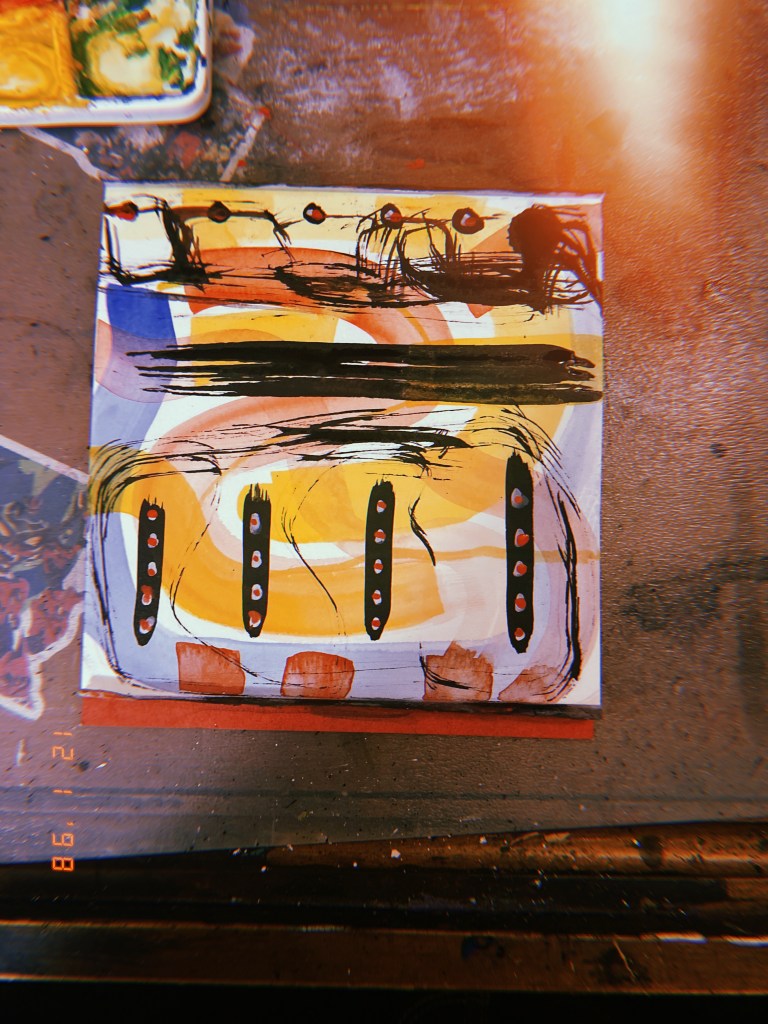 So much of this painting is about fearing the start of things and ending things. The colors and the ink are emotions that only exist without clear words (palavras).