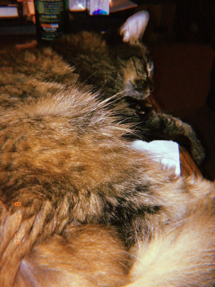 I have been trying to figure out the best way to say this for the last two days. My cat who I loved very much died of Friday. It was hard and awful and scaring. She was a sweet furry monster and I loved her in addition to all those things. I find my self looking for her out of the counter of my eye and not taking steps backward because I worry she is under foot.Â