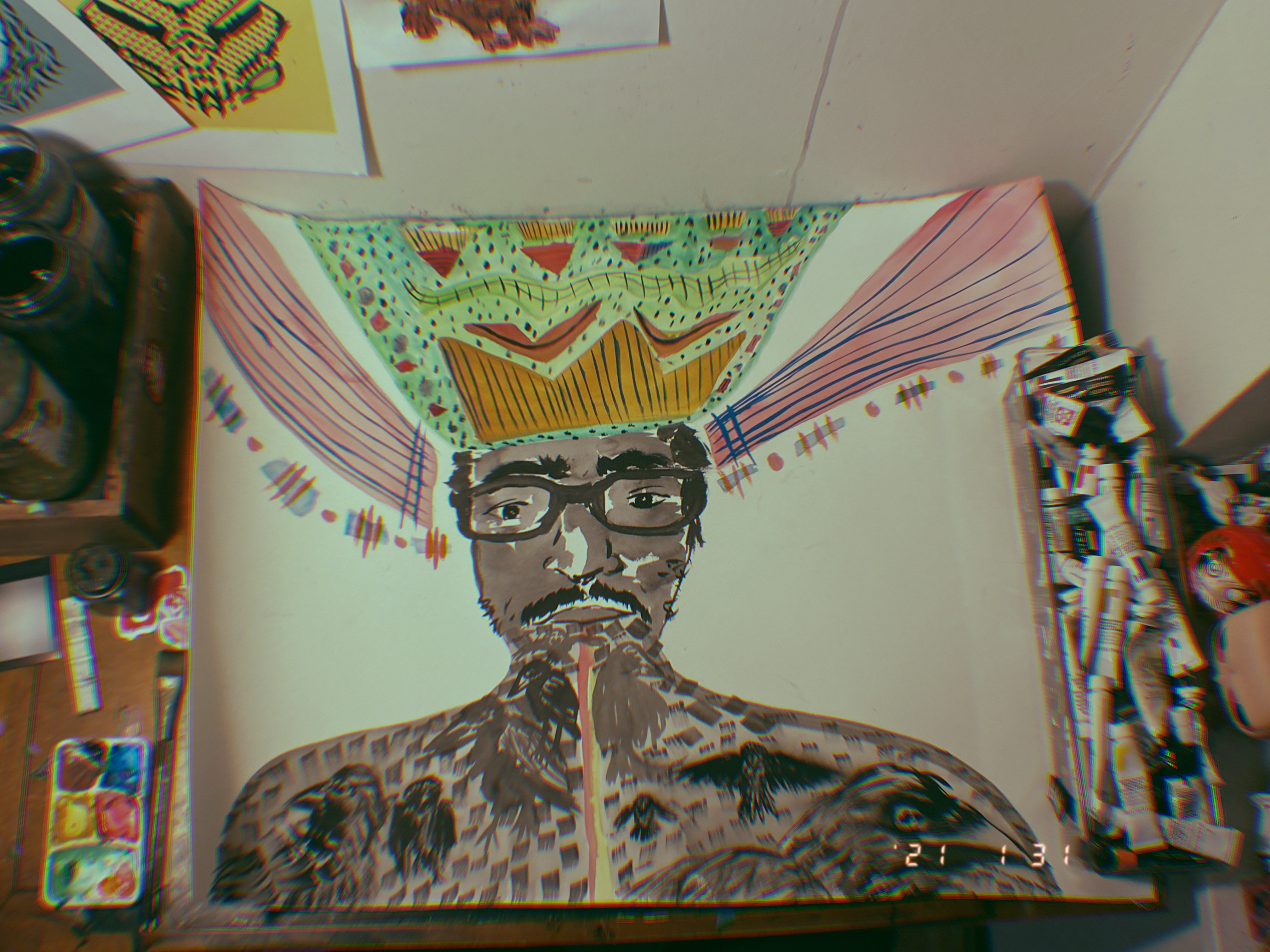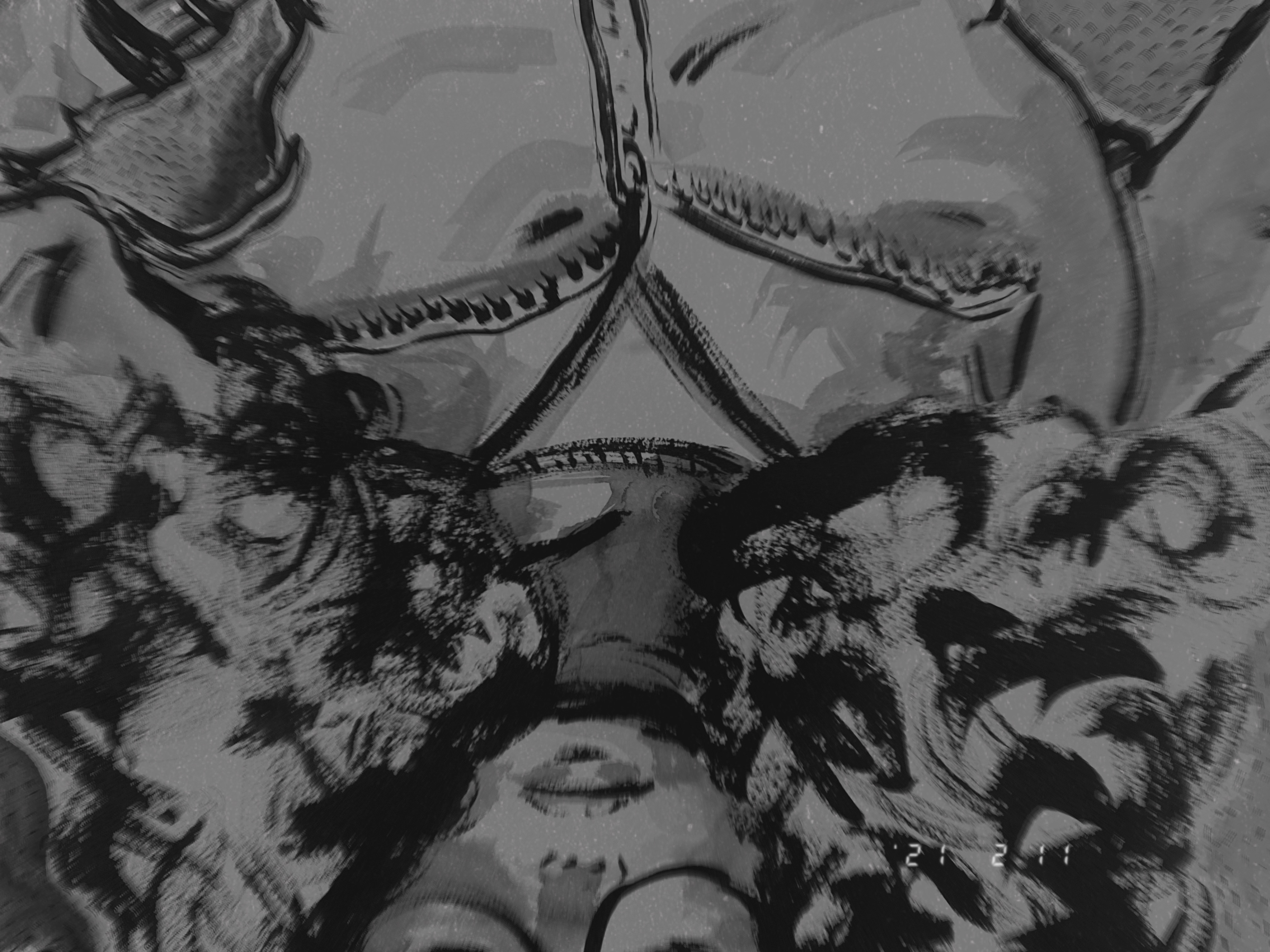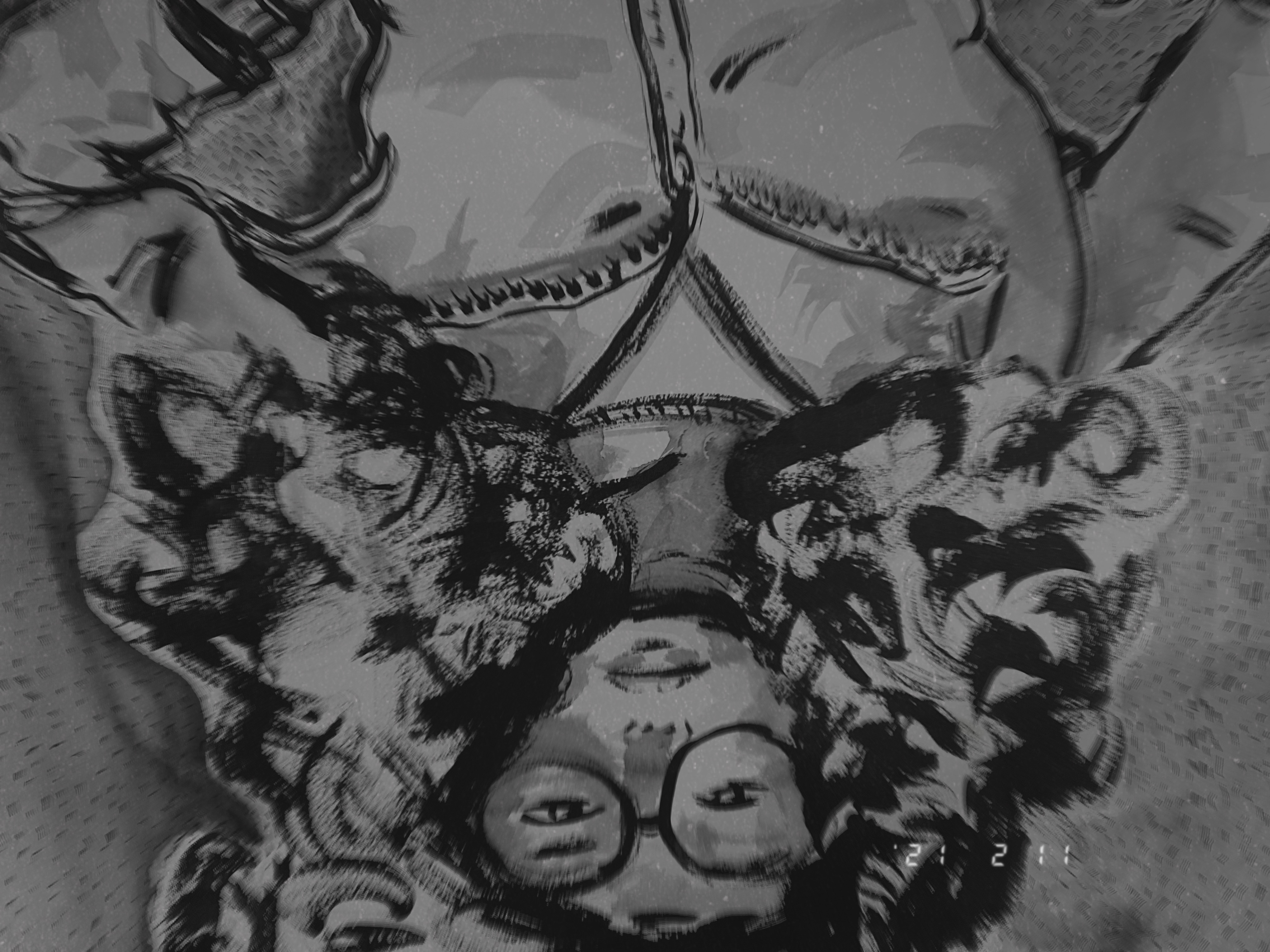 The studio demons are the early morning vibes I find myself in at 4:30 AM some mornings. No plant is left untouched, nor mask or painting. it would be sweet it they were not so destructive at this age.