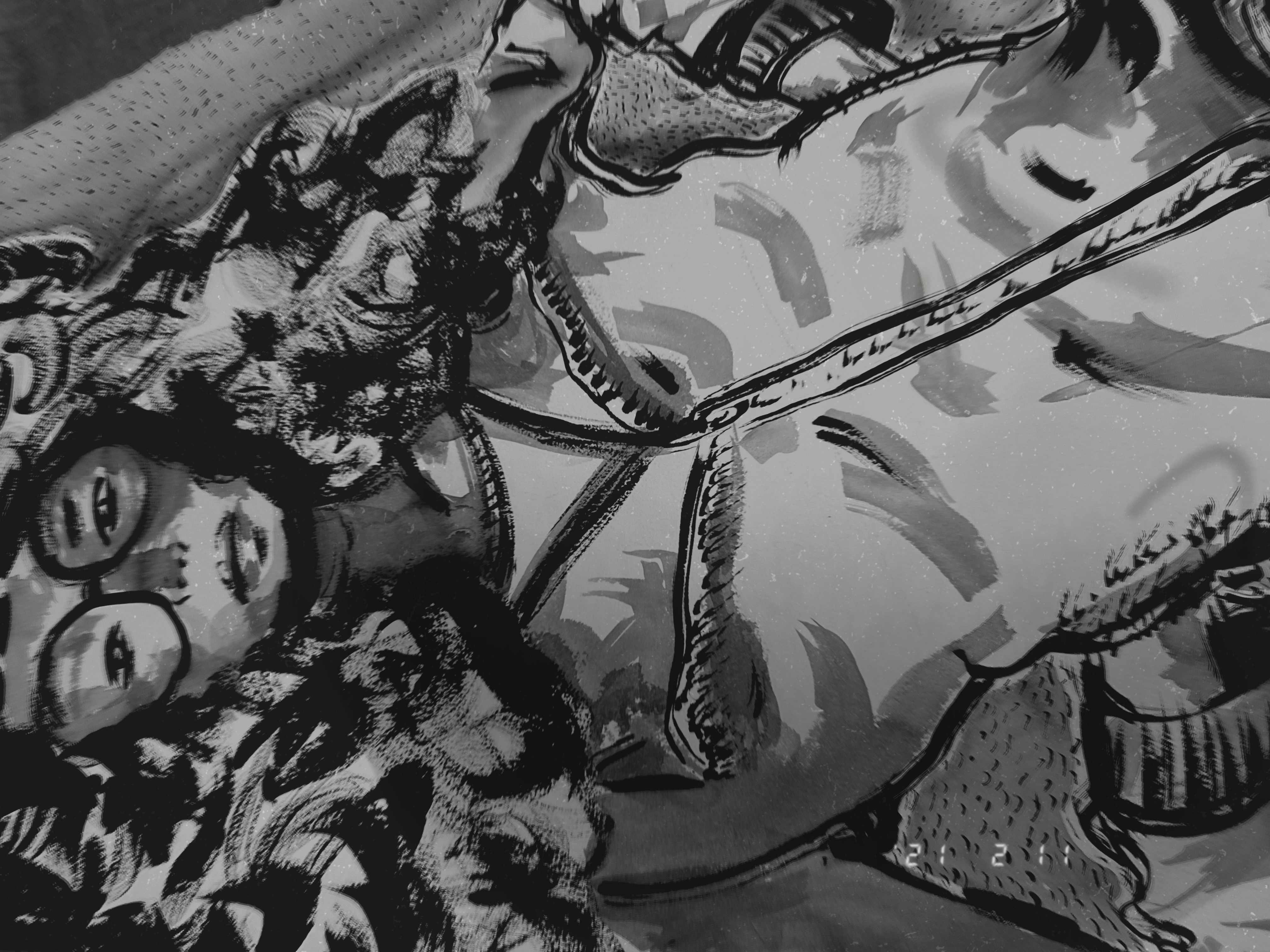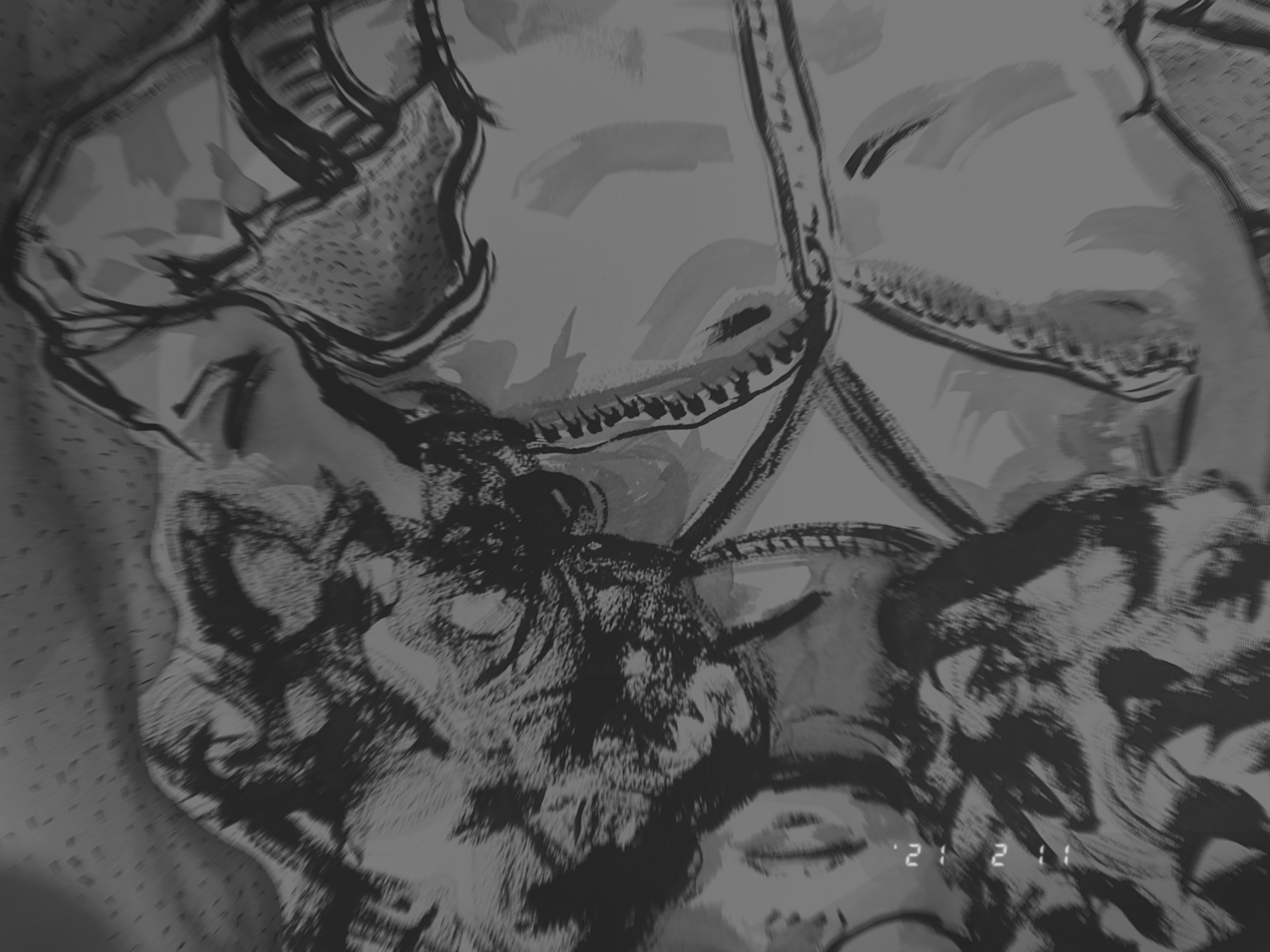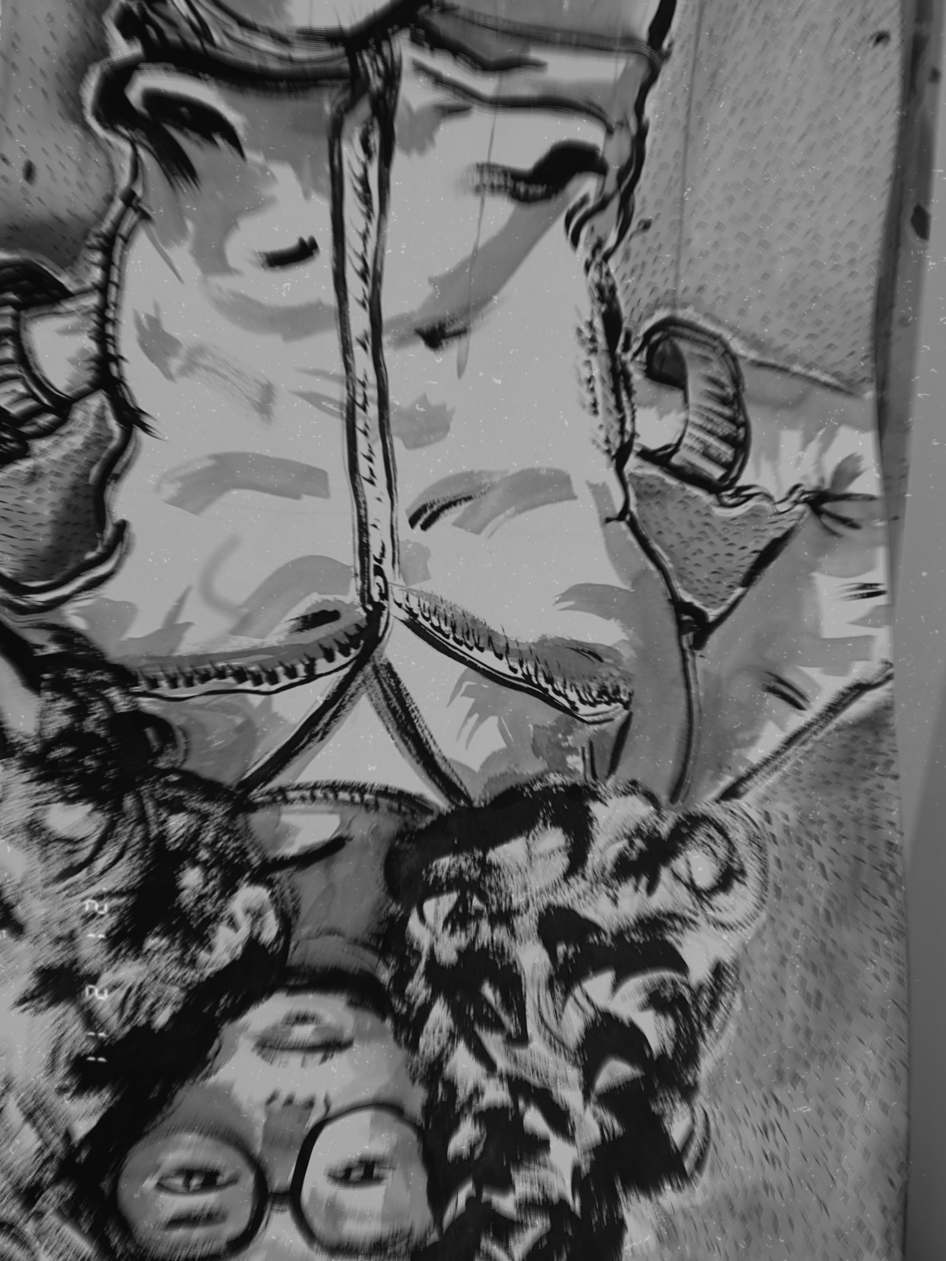 The studio demons are the early morning vibes I find myself in at 4:30 AM some mornings. No plant is left untouched, nor mask or painting. it would be sweet it they were not so destructive at this age.